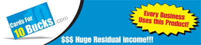 Previous experience as a business owner or in the design industry in not necessary to own a Cards For 10 Bucks business of your own, Cards For 10 Bucks business owners enjoy a turn key business system which includes training, marketing materials, the services of our designers, and complete support. No overhead or inventory is required, we will produce your product for you and drop ship directly to your customers. This eliminates the need for you to purchase costly equipment and hire trade personnel to fulfill your customers orders.